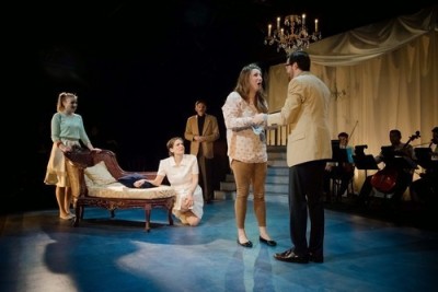 melenc-logo-400x182      Sarah Ruhl’s “Melancholy Play: a chamber musical” with music by Todd Almond is billed, at least by the characters, as a defense of Melancholy, but the feeling one gets from The Piven Theatre’s production is that of overwhelming nostalgia for an old world. As though the two concepts, nostalgia and melancholy, are inextricably linked, and that there is something contemporary America has lost that allows people to experience true is melancholy with all its beauty, tragedy, and melodious pain. Aside from the deliberately antiquated set (Jacob Watson), props (Austin Kopsa), and costumes (Stephanie Cluggish), this was accomplished by Ruhl’s script, Todd Almond’s chamber music, Polly Noonan’s direction, the actor’s conservative performances and each character’s carefully cultivated traditional persona. Unfortunately, the story takes rather a detour for the Kafkesque in the second act when Tilly recovers, and other characters begin turning into almonds with no other explanation than having caught her melancholy. It feels a bit too comic and grotesque to coincide with the rest of Ruhl’s script and Almond’s score, and makes considerably less sense than it would in Kafka, but it can’t seriously mar the experience of an equity performance with live chamber music.