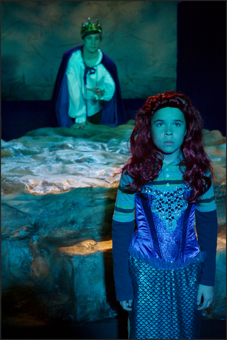 Their current production is the World Premiere of “MerChild” written by  Aline Lathrop, their playwright in residence for 2015. The story is one that will make you take notice as it deals with a family that is facing their youngest child having a gender identity crisis. With all of the headlines of late due to  Bruce Jenner’s transformation to Caitlyn and his/her bringing this matter to the world. Smoothly directed by Ms Filmer, on this tiny stage, with a solid cast of actors, I found the play itself flawed in many ways. I was confused as to where we were. In the center of the small stage was a large rock formation that was also near Lake Michigan shores, which we are led to believe is very near their home. As the lights come up we see a young man dressed as Ariel ( from the Disney version of “The Little Mermaid”). This is Adam ( a sparkling portrayal by Peyton Shaffer). We also meet a Prince (Will Crouse, who also plays a teen-ager, Eric, boyfriend of Adam’s sister Rhea (capably played by Stella Martin). We then start to get into the lives of this family.