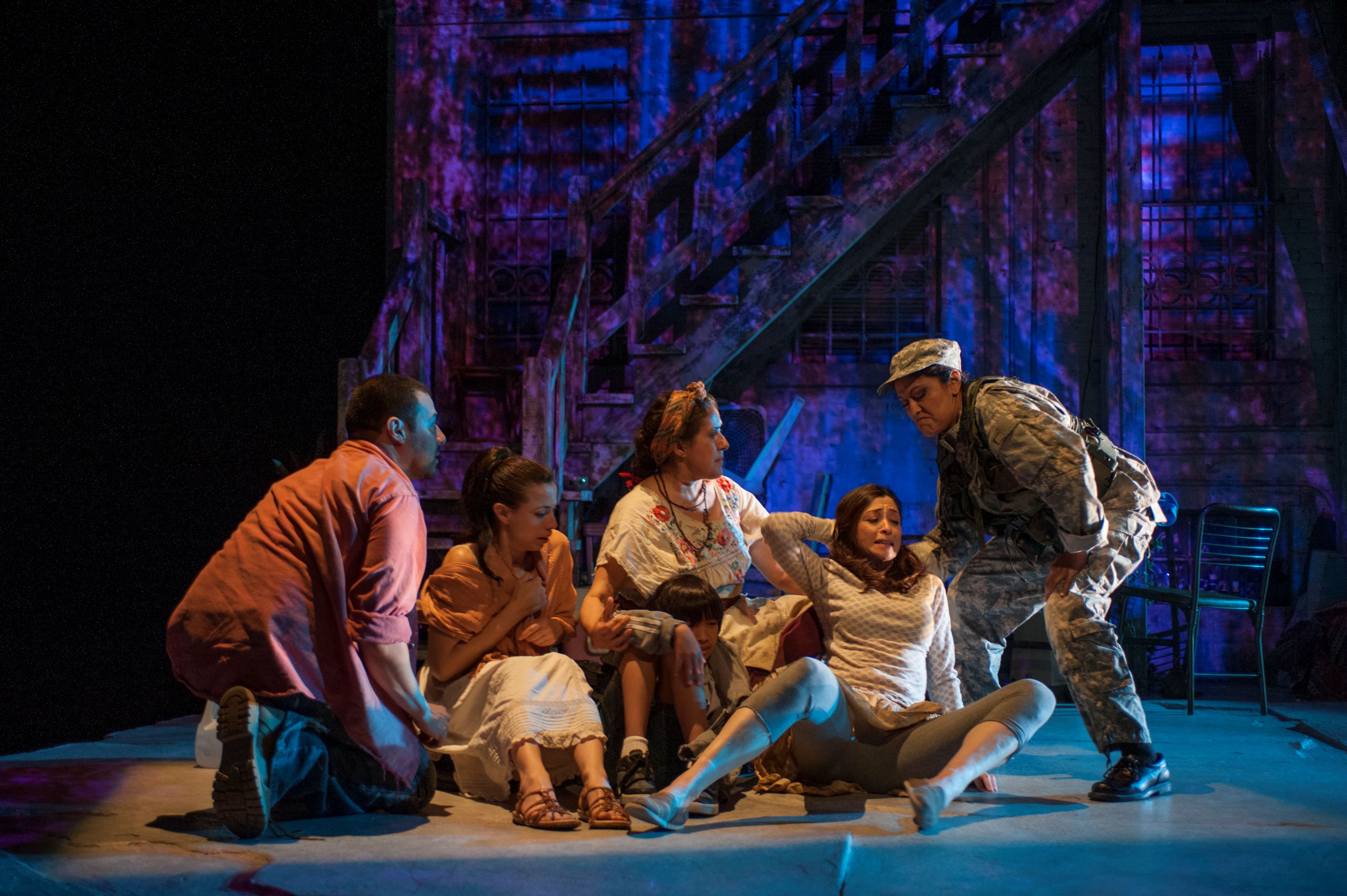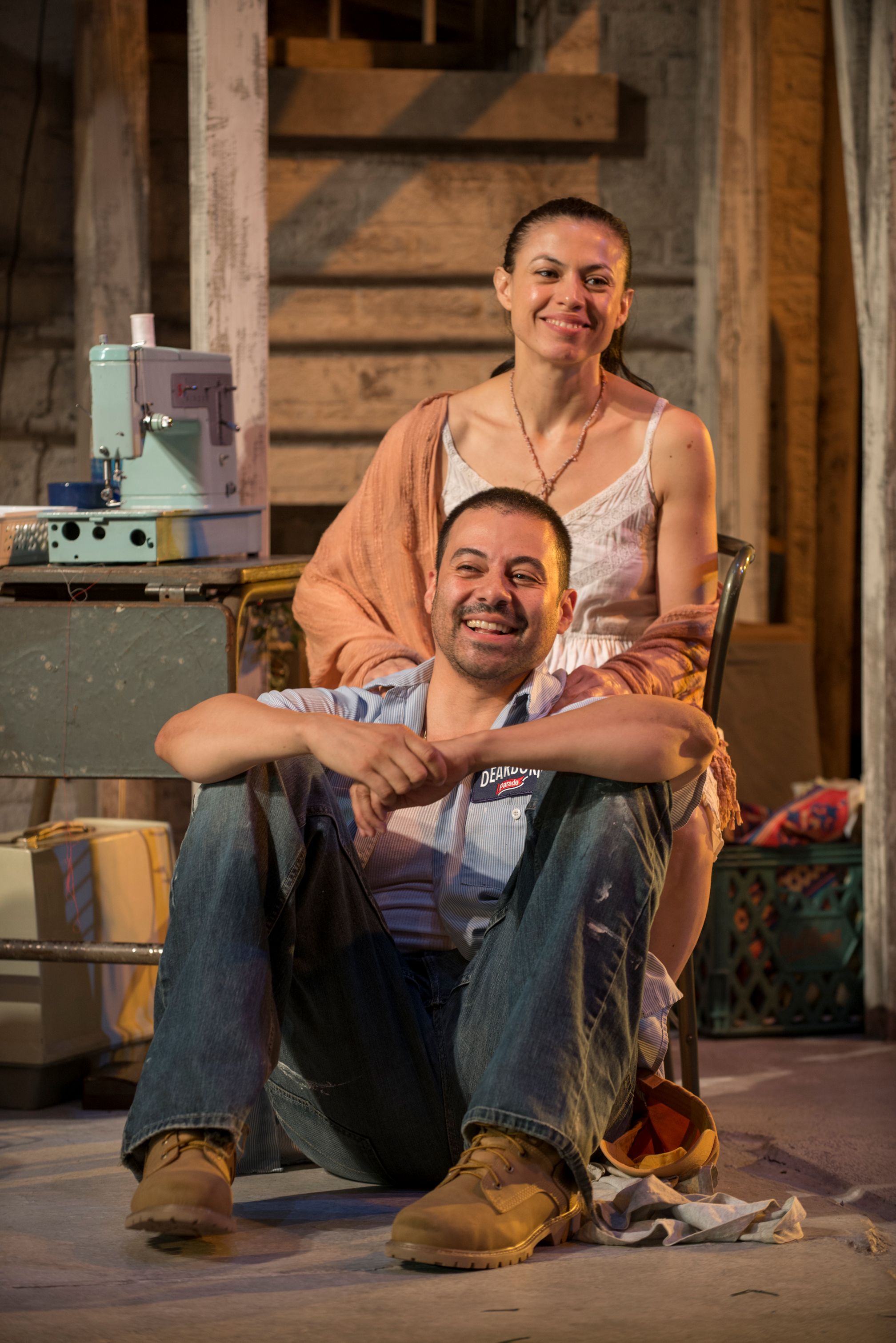 Pilsen is a neighborhood that has always been a haven for immigrants, but now is changing to a “yuppie” area due to the University of Illinois and all the new construction in the area. Little Village, an area just to the west of Pilsen is in fact an area that is 100% Mexican ( which Pilsen was until the expansion of the University). It is an area with many three flats and Chicago bungalows and the building that they live in is owned by a wealthy woman, Armida ( the always reliable and powerful Sandra Marquez) who hires Jason and allows them to have this apartment as part of his “Package”.The set( Yu Shibigaki) truly looks like the back yard in the “hood” with its high wooden porch and stairs leading to each deck area of the porch. The wires go from the building to the “alley” and one truly has the feeling that we are in that particular “alley” peeking over the invisible fence at the story going on in that building>