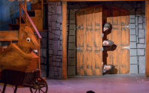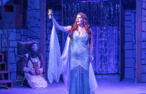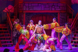 Eugene Dizon is the musical director and with his 5 musicians makes the music fill the theater, never overpowering the performers. The words in a piece like this are of greater import than in most musicals as they are the comedy that is Monty Python! Shanna Vanderwerker’s choreography is smashing. The set (Angie Weber Miller) is fun although there are few minor flaws in the construction that need to be repaired, but this is not an easy one to create on a small space like the Mercury’s stage. The tech aspects are divine with lighting by Denise Karczewski, sound by Carl Wahlstrom, costumes by Tim Hatley and wigs by Kevin Barthel. Matthew Zelinski has done a solid job of assembling the props for this zany piece.