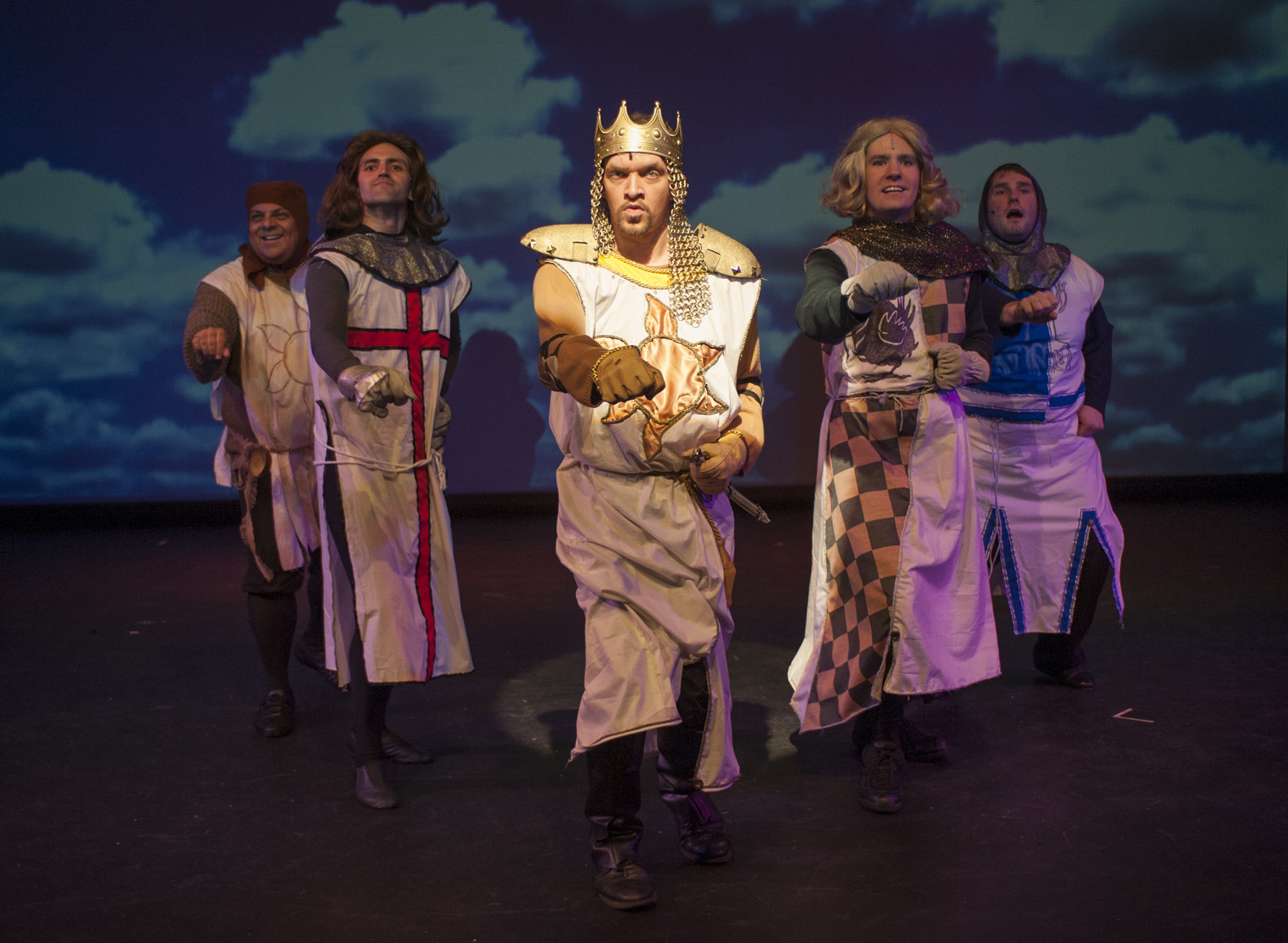 King Arthur is portrayed by Patrick Perry who has a solid voice and great comic timing. His side-kick, Patsy (Steve Malone is outstanding) also plays his “horse” . Hard to explain, but he does the clopping for a horse that does not exist, a funny bit and Malone handles it well. The members of the Round Table that Arthur gather together are a talented bunch of men as well: