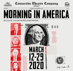 “Morning in America” by Connective Theatre Company is currently playing at Nox Arca, 4001 N. Ravenswood, Chicago, through Sunday, March 15th. Subsequent weekend performances have been cancelled due to the coronavirus. The run will resume as scheduled should the current situation improve over the next few weeks. Please check the website connectivetheatrecompany.com regularly for additional information.