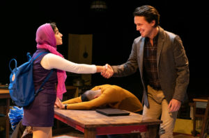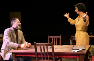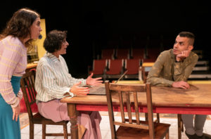 There is one additional actor, Rom Barkhordar who plays three roles, each one being important to the story and each one being different. Directed by Sophiyaa Nayar on a set designed by Steven Abbott, there were a few confusing portions. In using one set and making it be several areas and places, there were some confusing times. The home represented a Mosque a few times, then it was their home and then it was his office, and later, James’ apartment and I think his office as well. Since the only change was tilting the dining room table and moving chairs, one needed to truly focus on where they really were.