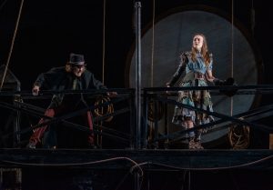 This cast is amazing! Christine Bunuan, playing at least five characters truly shows off her talent for comedy. She also proves that great things come in small packages. Cordelia Dewdney is Kit and others, Kasey Foster as Mrs. Prattle and others shows her ability to play many roles and sing in a huge range. Ruchir Khazanchi plays the son of the hatmaker, who is a little slow, but in the end is smarter than we think, and of course Sandys is incredible as the evil Fleece and the imprisoned “father”.
