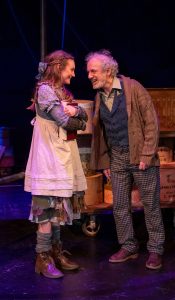 Fleece is the money lender who collects the debt owed by Kit’s father and when Kit finds out that the debt is all paid off she attempts to get the book so her father can come home. But Fleece and his partner, Gnat ( a truly funny character brought to life by Kaplan) have one goal- to get the hat.