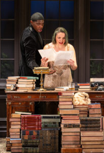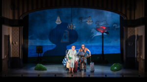 Alex Keiper embraces nuance in her portrayal of Christie. The author’s talent, heart, wit, and wisdom are on full display. In fact, such complexities are magnified when mirrored by the character of Lucy, one of her modern-day fans. Zoë Sophia Garcia brings this spunky yet struggling woman to life on the stage, and Lucy’s energy (and sometimes frustration) drive the story. She’s got some help, though, in the form of the formidable Jane, an older woman who only seems content to focus on her knitting early on. We soon find out that Jane is not only ready, but eager for an adventure. Dale Hodges plays this clever character to perfection.
