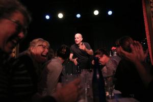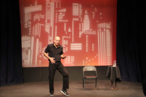 Is this a play? Not really, but it is not truly a stand-up comedy show either. It is a man’s story of who he is and how he got to be where he is today- standing on a stage in Skokie instead of waiting on a table at Max’s Deli in Highland Park or The Bagel at Old Orchard. These would be great spots for him to wait tables as the patrons would be his audience and wow, would he have new material! When he speaks to the trials and tribulations of being a waiter during his “non-performing” days (which as it turns out was decades) we hear about some of the great patrons he had. Many of them will be familiar characters in our lives. I know the lady deciding on what to order resembles my wife to perfection. Maybe Brad waited on us at some juncture.