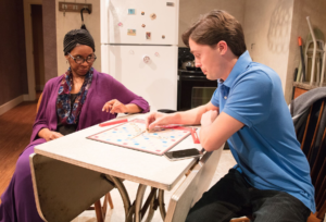 ★★★ What happens when we put two people together that have absolutely nothing in common? In ” N “, written by  David Alex and now in its World Premiere at The Greenhouse Theater Center, we meet a matronly, African-American widow, Mrs. Page ( played to perfection by Stacie Doublin). She was a political activist in her youth ( campaigning for Barry Goldwater, despite his stance on some equal rights votes) and now lives within her walls. Her son, only wanting to protect her, hires a young man, Eddy ( deftly handled by Ryan Smetana) an out of work actor ( which at one time or another is true of possibly every young actor) to handle the task. For him, this will e a better lifestyle than he is used to, but as he finds out, living with another person is not always that simple.