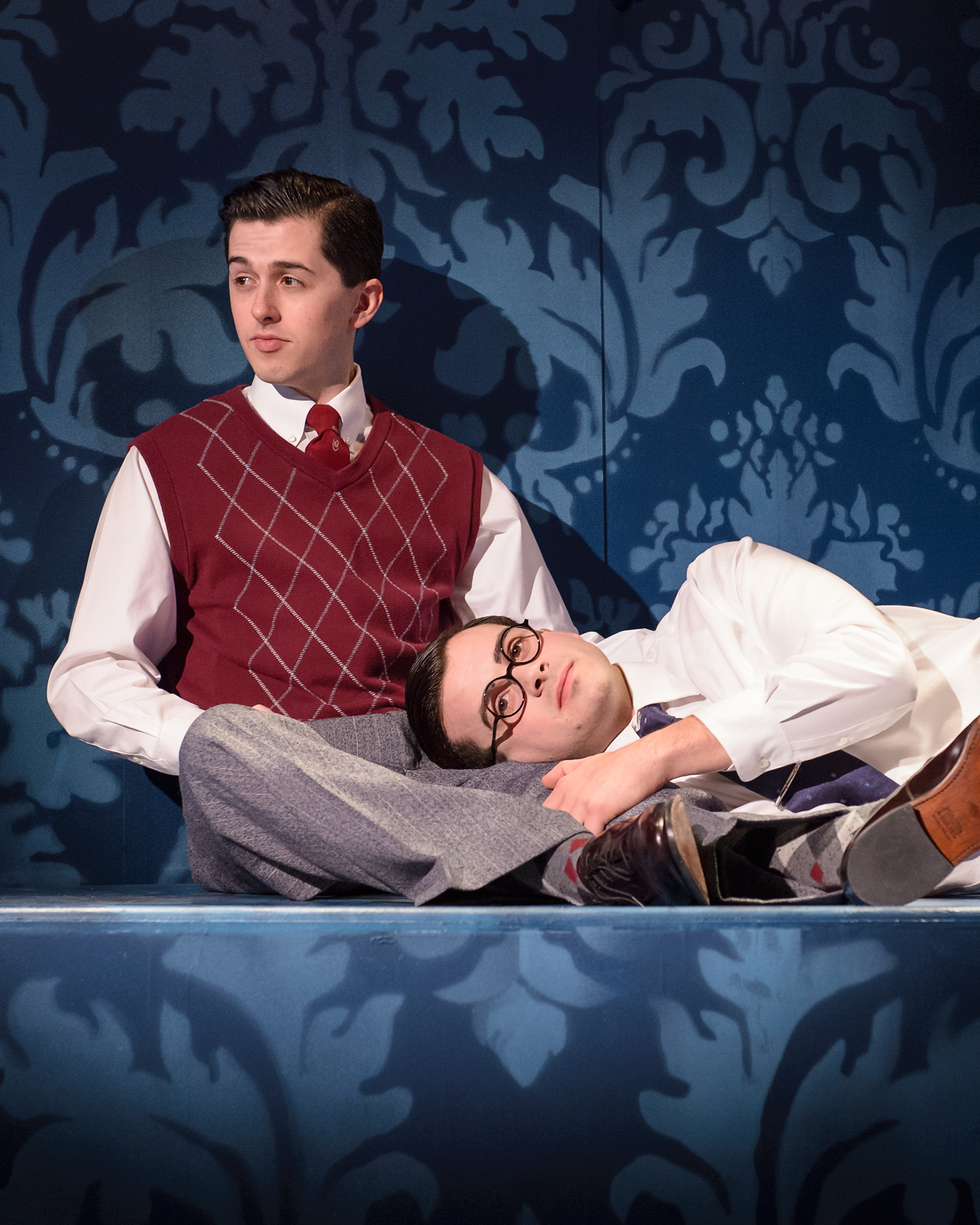 This play is not about the technical pieces that make it complete. They are strong with a set by Kurtis Boetcher that allows for a section to elevate, and for the green walls to serve as screens for the projections by Michael Stanfill. The lighting (Keith Parham) is used to great impact and even has sudden lights on the audience to make sure that no one drifts off. Andre Pluess handles the sound and Janice Pytel has a keen eye for detail in her costume design. Aimee Plant’s props are few, but fitting making the complete recipe sheer perfection. To be honest, it is indeed the script and the direction of the letter perfect cast by Griffin in bringing this story to life. There have been many stories dealing with the “Crime of the Century” and how these brilliant young men, these “supermen” who could do anything, were caught because of one little mistake. I won’t get into this, as not to ruin it for those who are going to see the story for the first time. It is very simple, so pay close attention.