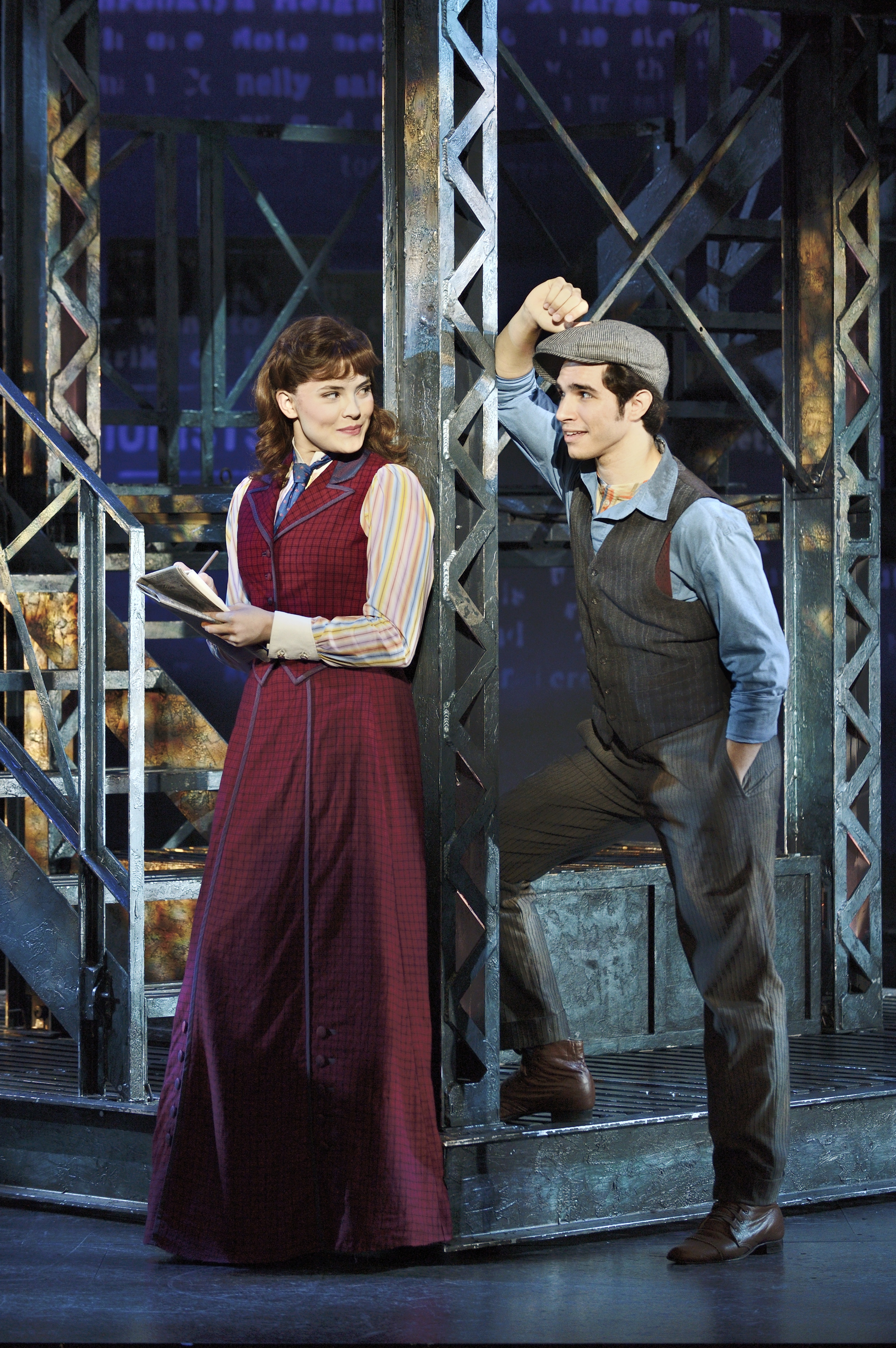 The First Act was mainly exposition and did not anticipate the excitement and tension of the almost soapy plot turns of The Second Act (Book: Harvey Fiernstein, Original Screenplay: Bob Tzudiker and Noni White). That said, the wonderful songs (Music: Al Menken and Lyrics: Jack Feldman), dance numbers (Christopher Gatelli), and actor’s adroit cultivation of their characters against an intense, refreshingly static, and flexible set (Tobin Ost), convincingly partnered with clever and artistically rich projection designs (Sven Ortel and Daniel Brodie) to give the illusion of the young and the vulnerable struggling against the big city and big print in New York City circa 1900, was more than enough to hold my attention while the storyline began to unfold in the first Act.
