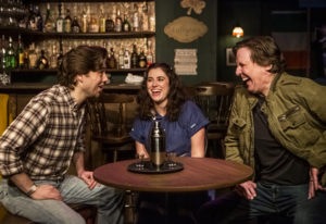 If you have never been to Oil Lamp Theater located at 1723 West Glenview Rd ( at Waukegan) it is a true storefront with two adjacent spaces, one as the lobby, the other the cozy theater. The stage is an open one, narrow and deep and the sets they do are amazing. This one, the bar is designed by Ellen Markus who also handled the myriad of props. Well done. The lighting (Sam Anderson) and piano composer (Trevor Early) also added to this powerful two hours of theater ( with one intermission).