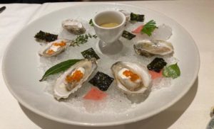 I remarked during our dinner that I was remined of my visits to Wheeling’s La Francais and its chef Jean Banchet only to learn that Mark worked there , prior to opening Oceanique ,and learned from this renowned chef. During the course of the meal, he came by our table several times to see how we were doing. In fact, I think that is the beauty of going to a restaurant on a Tuesday night– they have time to talk with you and that truly enhances the complete experience. This is not “just a dinner out”- this is “a night to remember”. What a spot for a special occasion !