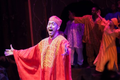 This is truly a love story, well sung and with superior dance numbers- hypnotic in some cases music and heartwarming story told by performers who evidently love what they are doing. The show starts in the lobby as dancers begin to show us the movement and as they lead us into the theater, we are greeted by the locals of the village and watch as the royalty enters.