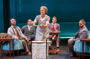 Directed to perfection by Nick Bowling on a wonderful set (Jeffrey D. Kmiec) with amazing visuals ( projections by Mike Tutaj) and great sound/music (Andre Pluess) this is as stunning to watch as one can hope for. The other tech aspects are also up to Timeline’s usual perfection: Katie Cordts ( wigs and hair), Amy Peter ( props), Jesse Klug (lighting), Christine Pascual (costumes) and Eva Breeman (dialects).