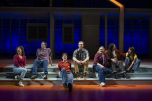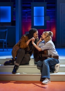 **** “Life Happens”! Most of us find ourselves adjusting to things that take place, but in a simple way that never, or close to never, upsets the apple cart ( or our family). In a new musical conceived by Leslie Buxbaum, David J. Levin, and Erin McKeown ( book by Buxbaum, Music & lyrics by McKeown, and the dramaturgy by Levin)  titled “Out Here”, we are observing a typical family, as the day begins in their house, that seems to be the perfect home and family.