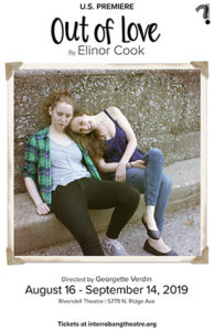 Recommended *** I enjoy the works that our smaller theater companies bring to their stages. For the most part they are very realistic stories, making them easier to understand. The intimacy of the theater, for the most part , allows us to feel like that “fly on the wall” we have all heard about. The Rivendell Theatre , now serving as the venue for Interrobang Theatre Project is a great spot for a small play ( except for its location relative to parking), This is where they are presenting the Unites State Premiere of Elinor Cook’s “Out Of Love”.