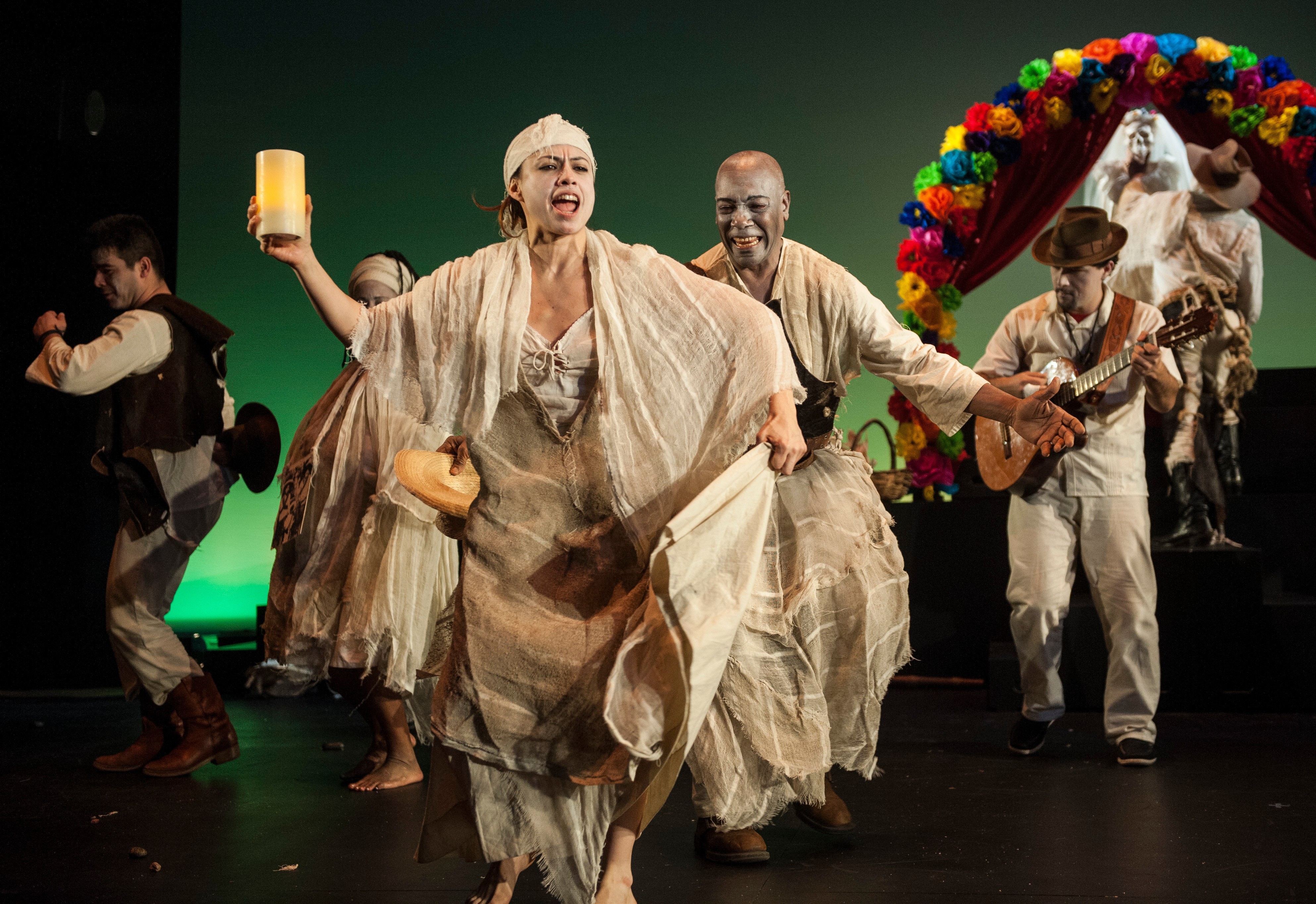 [rating=4] Since 2003 ( hard to believe it has been ten years already) The Goodman Theatre, in order to bring attention to Latino Theater companies, both local and from other countries, has presented its “Latino Theatre Festival. In come cases, it has been every other year, but in all cases, it has been quality theater, appealing to all audiences. They are starting this year’s Festival with a “partnership” with Teatro Buendia, Cuba’s most celebrated company and the brilliant production of “Pedro Paramo” ( a World Premiere). This sparkling production uses both Cuban actors and local talents as well , including some of the actors we have seen in Teatro Vista and Teatro Luna productions in Chicago. They have also added to this 90 minutes of dazzling story telling the music of Sones De Mexico ( a Chicago favorite in the Mexican community).