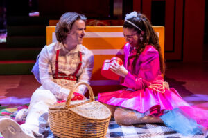 I cannot rave enough about the production’s creativity! Director Kyle A. Dougan, assistant directors Sasha Gerritson and Patrick Tierney, and music director Justin Akira Kono have created a masterpiece of artistry, together with intimacy and fight choreographer Amber Wuttke. The dancing is exceedingly pleasing and well-choreographed throughout, thanks to choreographers Mollyanne Nunn and Kaitlyn Pasquinelli. I especially liked the portrayal of the sex scene between Pippin and his wife Catherine under the covers by means of the use of two dancers; this analogy is intriguing and very well done. Costume design by Jazmin Aurora Medina and assistant Kristen Brinati is superior and could not have been handled any better! For example, one portion of Charlemagne’s costume consists of a stole made up of a clear plastic holder with all sorts of toys inserted into each of the compartments—from Legos to Beanie Babies—and this is so creative and wonderful! His crown consists of action figures from Superman to Spiderman plus power symbols related to our modern culture, such as McDonald’s golden arches. I adored the garbing of the sexy and provocative dancers with their sleek outfits and fishnet tights and bright colors. The patterning of every single outfit demonstrates tremendous thought, insight, and care. Hair, wig, and makeup designer Alice Salazar and assistant Melanie Saso also add their touch to the eclectic nature of each of the characters and point up their unique gender identities. Props design by Ellen Markus and lighting design by Andrew Meyers round out the highly professional stage presentation.