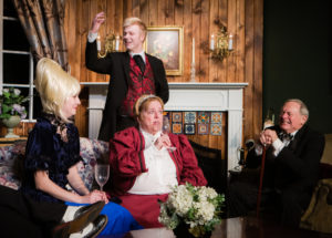 The other characters in the play are: the master of the house, played by Henry Benish ( who is in reality played by Rob Weinstein) and his wife, Polly ( a solid performance by Suzy Krueckeberg) , the maid,played by the stage-struck Smitty Smith ( the adorable Emrose Seidenberg) and the last of the players, Phyllis Montague, the playwright of the murder mystery ( played to absolute perfection by Nicki Howard.