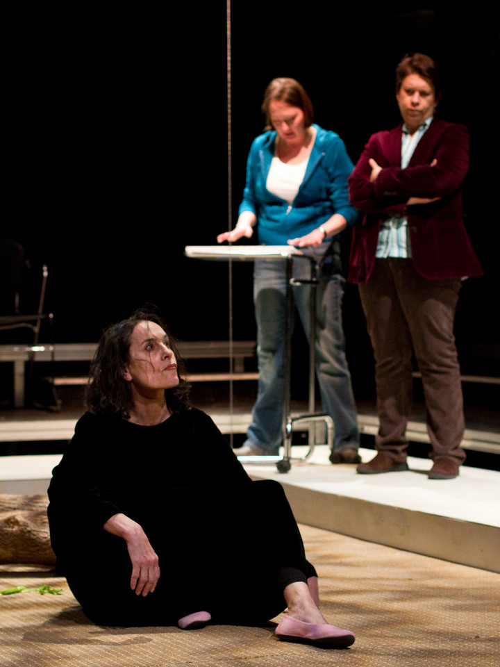 [rating=3] Language is our major form of communication. Yet, we often find other ways to communicate- take for example your pets, in particular, a dog. They will let you know when they want to eat, take a walk or just to be loved. Go to the zoo and watch the animals, both with each other and often with you the spectator. Try to imagine, however, that you are about to have a child and that there may be a abnormality that will prevent your child from learning language. How would you react? This is a major portion of what Madeline George’s new work, “Precious Little”, now having its World Premiere at the Chicago DCA Storefront Theater, looks at. This production, in association with Rivendell Theatre Ensemble, is strikingly simple with a set(Chelsea Warren) that is designed to be in the square ( instead of “round” allowing the entire audience to see all the parts of the puzzle that has been created by George and masterfully directed by Julieanne Ehre. This is a story that is about words and because of the importance of these words, we, the audience must pay close attention to the many characters depicted by the three marvelous actresses who bring them off the paper and into our hearts and souls.