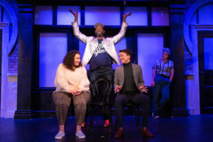 This is a two act show, and to be very honest, the first act was a bit slow and not quite as funny as the second act, which is worth waiting for. I wish they could find a way to get the first act to be as hysterical, but I realize setting the scene is not as funny as what happens after we get to know the “Fab 5”. The “Fab 5” is the panel that will help Sam be the man he should be and move out of his mother’s basement. The mother ( Dakota Hughes is a stitch) has submitted her son’s name. We meet Sam (Bryson Howard, a perfect nerd) and the panel is aghast. His Alter-Ego, the other Sam is played to perfection by Jordan Dell Harris.