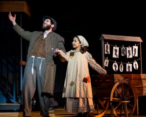 This is not a big dance show, but choreographer Ariel Etana Triunfo has some numbers that are terrific. The Musical Director/Conductor , as usual is Roger L. Bingaman and as usual it is wonderful ( there are 18 musicians in the pit). Rachel Spryniewski’s costumes are far more than I would expect from a local theater. They were surely “Broadway”! The sound ( Jonesy Jones) and lighting ( Andrew Meyers) and the props (Ellen Marcus) were up to the Music Theater Works standards of perfection and the set design (Sotirios Livaditis) allowed for scene changes to happen swiftly ( helping the time move faster). The fight choreography was handled by Nick Sandys who is a specialist in this and the wardrobe crew led by Jenna Williams made some amazingly fast changes as ensemble members changed characters with their costumes.