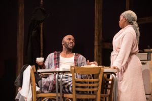 Inspired by Langton’s Hughes’ poem “Harlem” (1951), Hansberry wrote her award-winning drama (1959). This musical adaptation (first staged in 1973), continues to add depth to the sentiments first expressed by Hughes. That depth comes through the characters first brought to life by Hansberry, most notably strong and distinctly different female leads. Wydetta Carter is commanding and captivating as the recently widowed and deeply faithful matriarch Lena Younger. Camara Stampley brings exceptional energy and passion to the role of Beneatha Younger, Lena’s strong-willed and independent daughter. And Melanie Loren dazzles as Ruth Younger, Lena’s daughter-in-law who skillfully navigates her responsibilities as a supportive wife to Walter Lee and loving mother to son Travis. Loren and J. Daughtry, who plays Walter Lee, have real chemistry and beautifully portray a loving, committed couple.