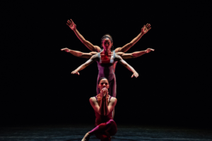 Nicole Clarke-Springer’s Forces (2018) came next and featured four dancers exploring spiritual influence on daily consciousness. Set to the ethereal sounds of Marcelo Zarvos, Forces (2018) is a mystical journey of sculptural, balletic movements. Briana Arthur is radiant as a young woman engaging with her spiritual guides, all exquisitely portrayed by Rebekah Kuczma, Nehemiah Spencer and Trey Johnson. In one incredibly emotional moment the four dancers stand in a line facing each other, one arm out, gently compressing the back or stomach of the person in front of them, as their backs arch or contact in response to the pressure. The visual gives the distinct impression that the four are exchanging breaths, and the mimicry of movement and total synchronization leaves one feeling the complete connection and oneness they have with each other. Our final image of the piece is of the young woman being lifted and carried along by her spirit guides, as they help her traverse this uncertain world.