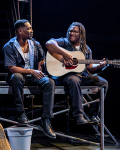 The story might be confusing, so I will attempt to keep it simple. Hampton Falk-Weems ( deftly handled by Aaron James McKenzie) a soldier and aspiring musician returns from duty in Afghanistan, he finds that his neighborhood ( the south side of Chicago), he finds that there is another war to face. What we experience during this two hours plus of musical theater ( there is one 15 minute intermission) are two stories that intertwine. A father who does not have an honorable discharge, so has no benefits, who finds his true love, has twin boy and in order to survive must become a thief. His twin sons, also find themselves caught in self made traps and through the magic of music, we the audience get to watch and consider what becomes of violence and how it can take over our very being.
