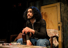[rating=3]Upon entering the theater at The Artistic Home you will feel transported back in time to a more liberally-minded, free-spirited era to experience Tom Stoppard’s 2006 play “Rock ‘n’ Roll.” The stage consists of one very long, slightly raised platform which runs the length of the room from south to north and has four distinct playing areas, cozily designed by Kevin Hagan. With several selections of 1960’s and 1970’s British rock bands providing the pre-show recorded music, patrons are encouraged to view the art work on the walls and grab a seat anywhere. The seats run on either side of the stage, the entire length of the room, and are made up of very comfortable padded chairs and randomly placed large, over-stuffed easy chairs or compact sofas, all covered with plush velvet drapery or hand crocheted afghans. It all exudes enough grunge that you would swear you could be in a dive bar right off of Leicester Square, circa 1970. While they certainly got the vibe exactly right, Kathy Scambiatterra’s loosely directed production doesn’t always come off feeling cohesive.