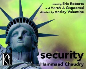 Of course, the offering I saw tonight, “Security” written by Hammaad Chaudry and skillfully directed by Ansley Valentine is filmed for view on one’s computer or smart TV. It is a two person play ( although filmed) in two scenes and will keep you spellbound for roughly one hour. The two men are played by Eric Roberts ( Brian) a multi-award film nominee and Harsh J. Gagoomal ( Riaz).