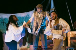 The technical parts o fthis production are amazing. Hats off to Caitlyn McLeod who handled the many props and designed the puppets for this powerful production. WELL DONE! Autumn Egger’s costumes are brilliant with one obvious exception. The leather belt worn by our hero should have been a rope. The set (Lauren M. Nichols) is unique and uses the stage to its fullest capacity. Again, 90 minutes of awe and wonder.