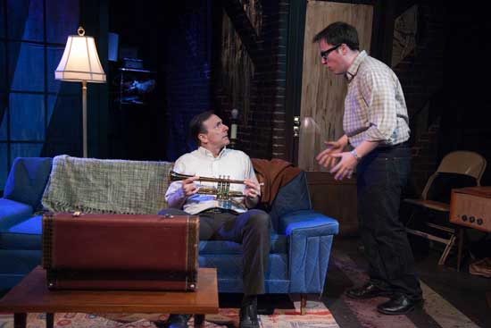 The set by Sarah Ross, is a multi practical apartment and smoky jazz club. The lighting (Heather Gilbert), sound (Rick Sims), costumes (Emily McConnell) and props (Christopher Neville) all add to make this show as tight as a director would want it to be. The music that we hear was prerecorded by Art Davis (trumpet), Phil Gratteau (drums), Dennis Luxion (piano) and Kirk Garrison (trumpet). When the doors to the theater opened for seating, tonight we had Art Davis on the stage playing. Each performance will have featured player bringing us some great jazz of the times.