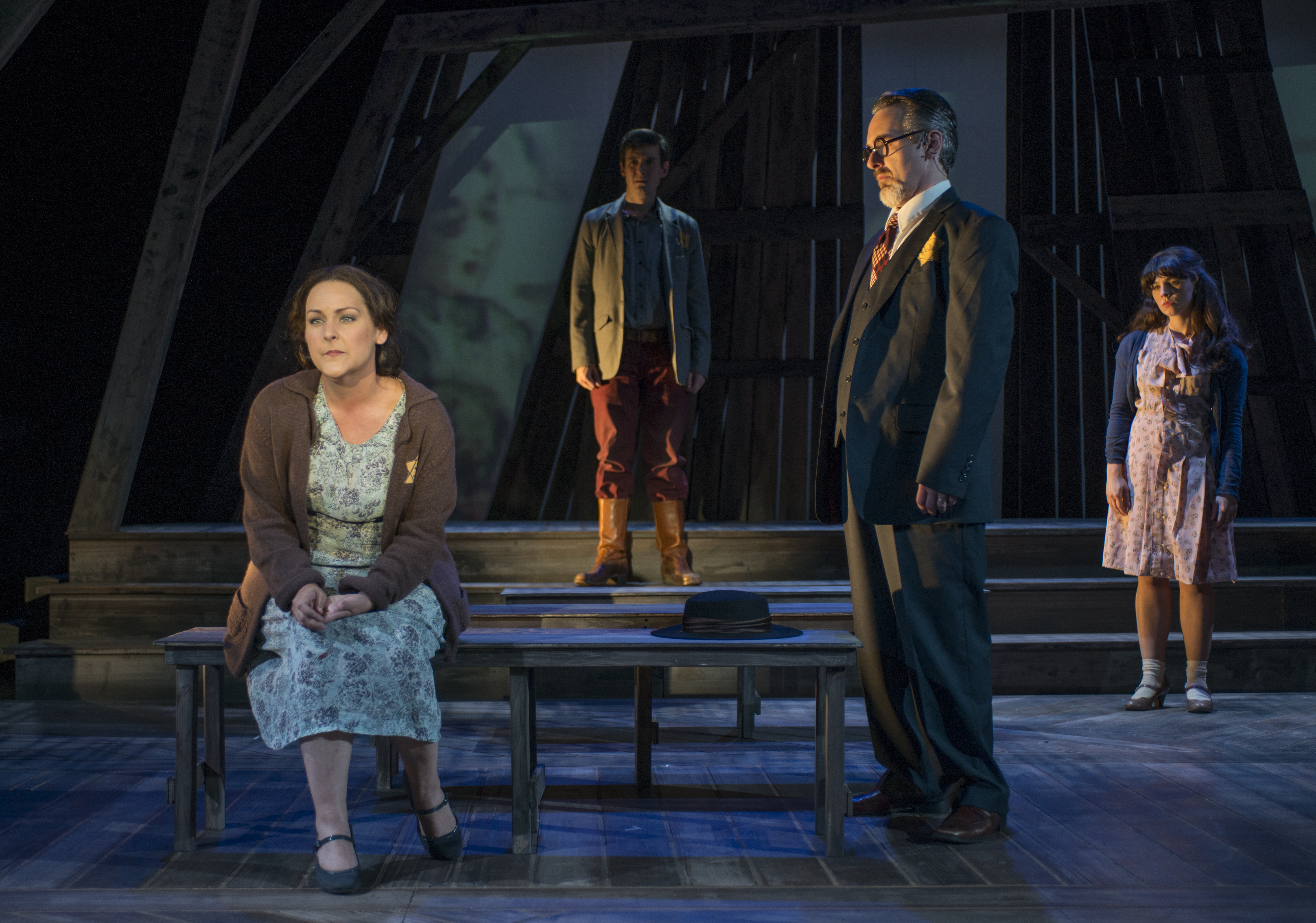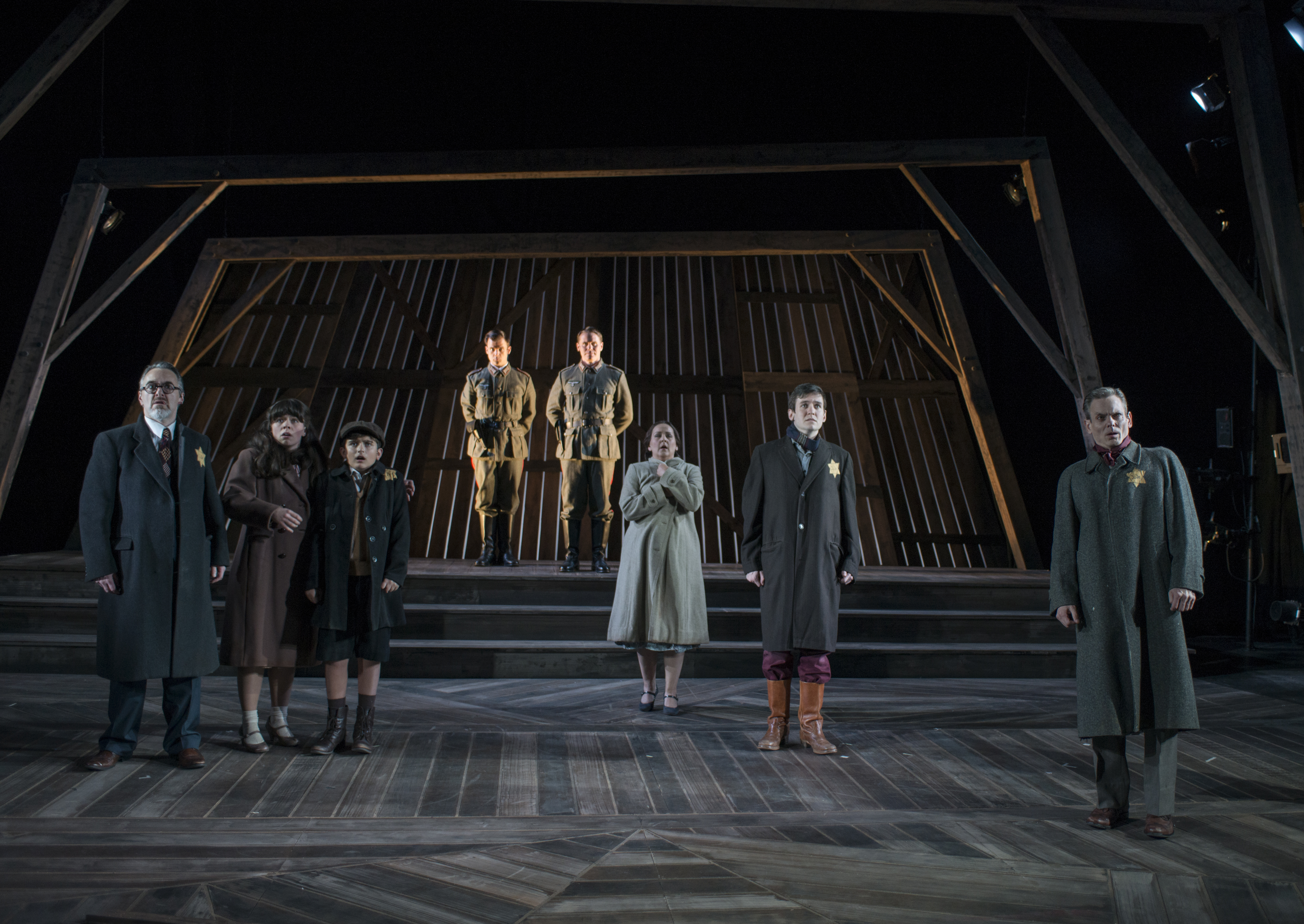 The technical aspects of the production are really quite simple- Brian Sidney Bembridge ( set and lighting) allowing us to focus on the actors and the action. Mike Pettry and his two musicians made who I think were under the stage did a great job of making the music audible. The costumes (Elsa Hiltner were of the times and of course the yellow Jewish Star was highly visible ( on almost all the coats),Mikhail Fiskel handles the sound and we had no problem hearing the dialogue and songs, and the choreography/fight scenes were handled by Julia Neary.