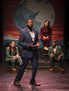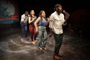 The four featured performers are Eustace J. Williams as MAN1, Matthew Hunter as MAN2, Nora Navarro as WOMAN 1 and Emily Goldberg as WOMAN 2. All four have powerful voices and terrific range.