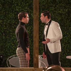 So the question becomes how this particular show ought to be staged. For starters, an audience of forty-five people is too many for this set to hold comfortably. But having a smaller audience doesn’t solve the problem of poor sightlines. Building a larger and wider set would make it even more difficult to hear when something is going on in an adjacent room, and this would make audience members have to traverse a much greater distance to follow the action. The limitations of the set design consequently made me wonder whether this show ought to be immersive in the first place. I’m not sure the live audience added anything to the performance, except that we could have an alcoholic (or non-alcoholic) beverage when the cast did. I would quickly exchange this circumstance for having the audience being able to clearly see and hear everything that is being said and done by the characters.