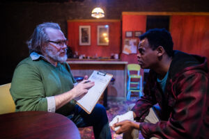 As the story goes on, we learn more about Franco and his past. I don’t like to give away important parts of the story, but will tell you that Franco has a money problem and men who are looking to get paid. Something major happens to Franco, causing Arthur to re-evaluate his life and help his newly formed friendship stay alive. There is a major fight scene that will knock your socks off. It is an amazing work that is pulled off to perfection by Westerman , along with Coker and John Wehrman, Michael Bayler and Adam Schulmerich. FYI- the first row of seats is about 7 feet away from the action. Quite impressive!