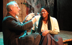 Recommended ***  One of the characters in Aaron Carter’s latest play “Swamp Baby” expressively states that, looking back upon one’s own life, it’s possible to reflect that is was all just a “convulsion of memory.” This is posited by a man who, purported to be a physician yet perhaps without the credentials to prove it, seems to be more interested in the eccentricities of the human body than the pain and secrets contained within the human heart. Carter, the local writer whose work has allows been informed by his fascination with magic, sideshows and the circus, has fashioned a hauntingly poetic work detailing capitalistic gain versus scientific advancements as well as themes of miscegenation and one which allows us to embrace the sometimes unpleasant sensation of what it must feel like to be an outsider looking in. Under Lauren “LL” Lundy’s sympathetic yet focused direction, this world premiere presented by MPAACT at The Greenhouse Theatre Center is radiant.