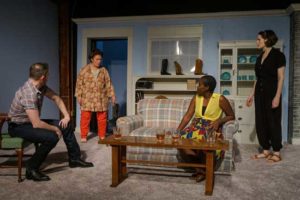 Kate Wolcott (Scottie Caldwell) identifies as lesbian and comes home from New York City to Sealy, Texas, with her new wife Samantha (Anita Kavuu Ng’ang’a) in tow. Rather, the trip was Sam’s idea to introduce them as a couple to Kate’s mother, Ellie. Sam, who happens to be a black woman, is suddenly thrust into the bosom of a fundamentalist Christian white Texan family. This creates an uncomfortable situation where long-standing rifts begin to surface among family members—and are brought to the fore when Kate’s former boyfriend A.J., a/k/a Alan John (John Wehrman) makes it clear that he is still sweet on Kate and wants to propose marriage to her.