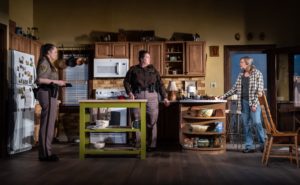 The other characters in the play are Sherriff Kris (deftly handled by Kirsten Fitzgerald) and her niece, Dani ( Anne E. Thompson). Dani likes being important but is not like her aunt- she doesn’t want to arrest or even question to deeply. Many changes are part of her character in this play and not wanting to give anything away, many lives will change as the story evolves.