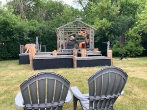 Now with the end of the pandemic coming, and theaters feeling the time for live theater has come, this company has found a new and exciting way to work through this. They are doing a “Season Under the Stars”, and instead of using their small parking lot, they have worked out a program with a local church Saint David’s Episicopal at 2410 West Glenview Road ( at Shermer). In fact, you enter the “theater area” of the church from Shermer, park your car and you will see a setting that is a “sight for sore eyes”- a theater!