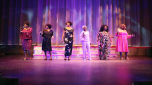 During each of these artists’ reflections on their personal past, additional singers play the young Gladys Knight (Michaela Dukes), the young Dionne Warwick (Bri Buckley), and the young Patti Labelle (Courtney “CO.” Driver). These singers are cleverly paired up with their elders in terms of the character of their voices and body language. One of the best matchups is that of Batiest and Driver as Patti Labelle, with all of her vocal runs and vibrato and ability to hit all those high notes. It is fun to see Patti kick off her shoes and lie down on the stage floor as she belts out her numbers! The rolling on the floor is reminiscent of the joyfulness of being in the Black Church when the Spirit is within you! While these two vocalists garnered some of the loudest applause at the end of the show, every performer—absolutely everyone—is first-rate!