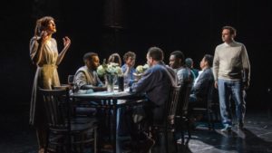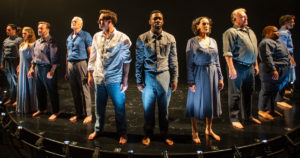 Since all of this is supposed to be Augie’s memories, it’s staged on an industrial looking black stage. The ensemble all wore shades of blue, black and gray, and for some reason, they’re all barefoot. Kudos to all, the acting was superb. Additional ensemble members: Sebastian Arboleda, Kai Ealy, Neil Friedman, Aurora Real de Asua and Stef Tovar.