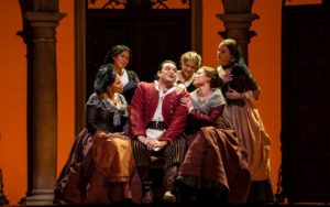 Highly Recommended ***** The audience laughed nonstop for an hour in the second half of The Barber of Seville, as ninety minutes of meticulous set-up broke into madcap comedy. That’s what happens in any successful production of the 1816 masterpiece by Gioachino Rossini, and the season premiere at the Lyric Opera was no exception. A remount directed by Tara Faircloth of the Rob Ashford production that played here five years, ago, Barber has lost none of its vitality, and is an ideal display of the physical comedy and vocal talents of its cast. It’s a rare work that can transcend centuries and cultures to remain genuinely funny, and under Sir Andrew Davis’s comfortable conducting, is a delight to the ear, as well.