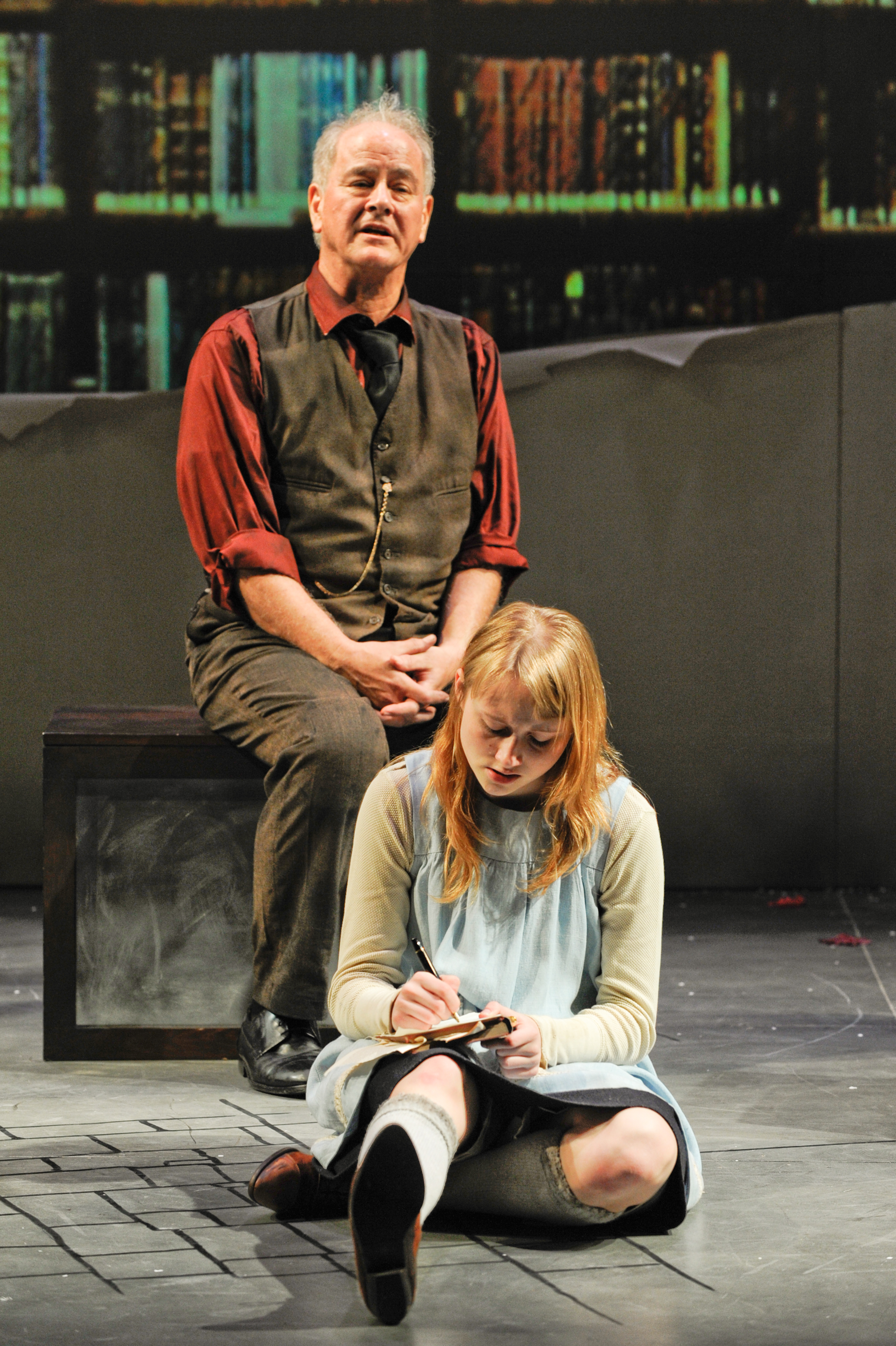 “The Book Thief” is a beautiful story, well told by a cast of solid performers. The transformation from book to stage works quite well and the emotions that it is meant to stir up in us, comes through. I know that at the end, a few tears rolled down my cheek, and yet, I walked away from this marvelous production feeling hopeful that the new generation will learn from the past and that over time, this sort of danger will cease to be as strong as it was back then or even today. Watching Guinan do his thing is a true lesson for any young actors who desire to make this their profession. He is a marvel to watch. The production is only as strong as the sum of its parts. I have spoken about the writer/adapter, director and the cast, but the final touches of making this the special event that it is is the set ( Lizzie Bracken) which is simple and easy to transform from location to location, the costumes (Sally Dolembo),Lighting (J.R. Lederle, Sound and original music (Rick Sims), projection design ( another fantastic job by Mike Tutaj) and the fight choreography by Ryan Bourque. There is no mention of the props master, but whoever handled this task, did an excellent job as well. I find props to be more important than many , but every little item that helps bring all the parts together is very important to making the production whole!.
