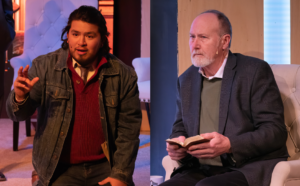 New to Citadel Theatre, but a familiar face to Chicago and national audiences (local theater and movie, television and commercial work) Frank Nall plays Pastor Paul’s confidante Jay, a Church Elder. Jay represents the board of directors—the “business end” of the church (or any religious institution for that matter). The church in The Christians has, in addition to a huge chapel, dozens of religious school classrooms, a bookstore and a coffee shop. But it costs money to keep the lights on. When members start to leave the church, Jay complains about declining religious service attendance. This issue has plagued religions of all faiths over the last decade, as not only religious service attendance, but also religious affiliation itself has been steadily declining. Fewer congregants mean less money for facilities and programs.
