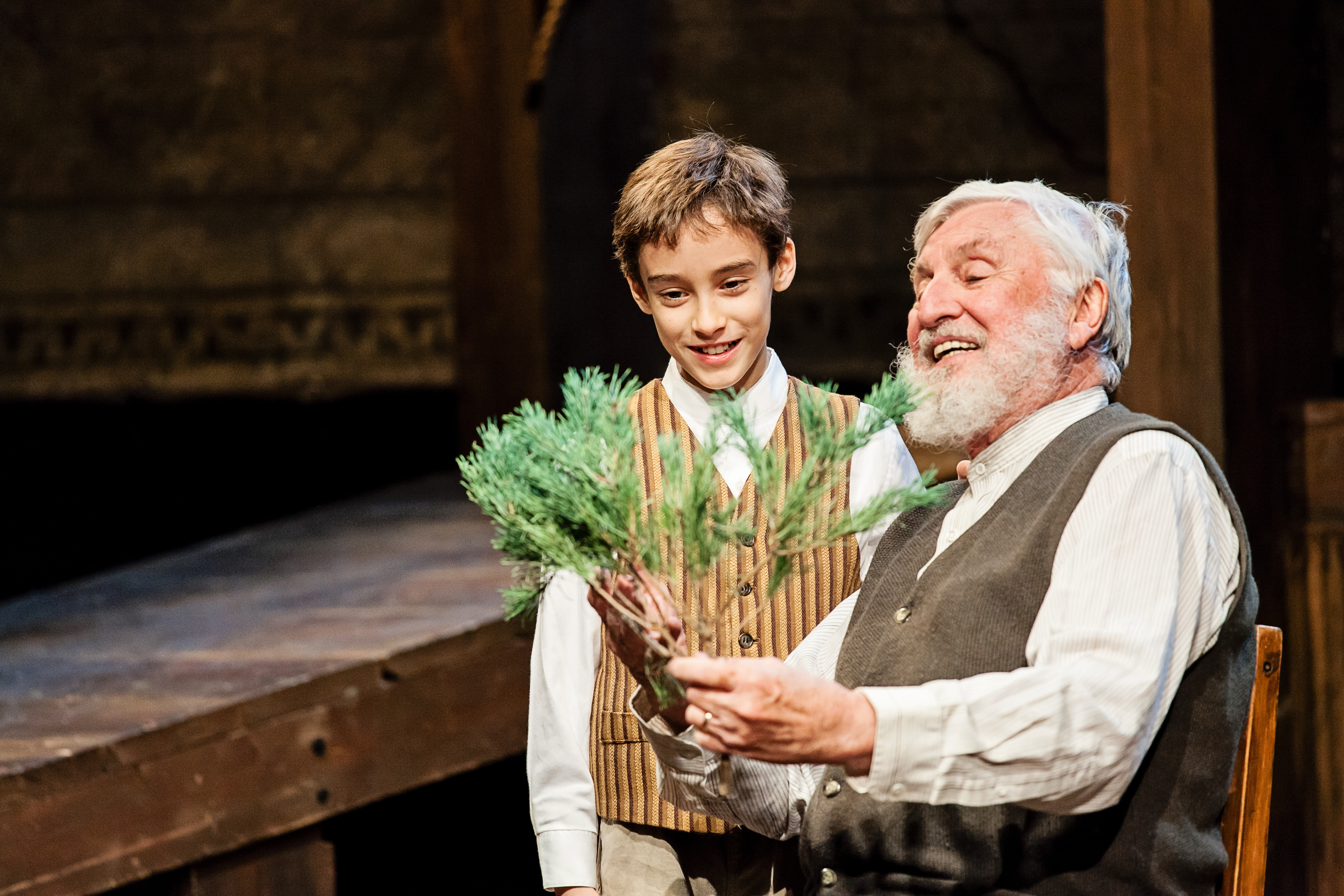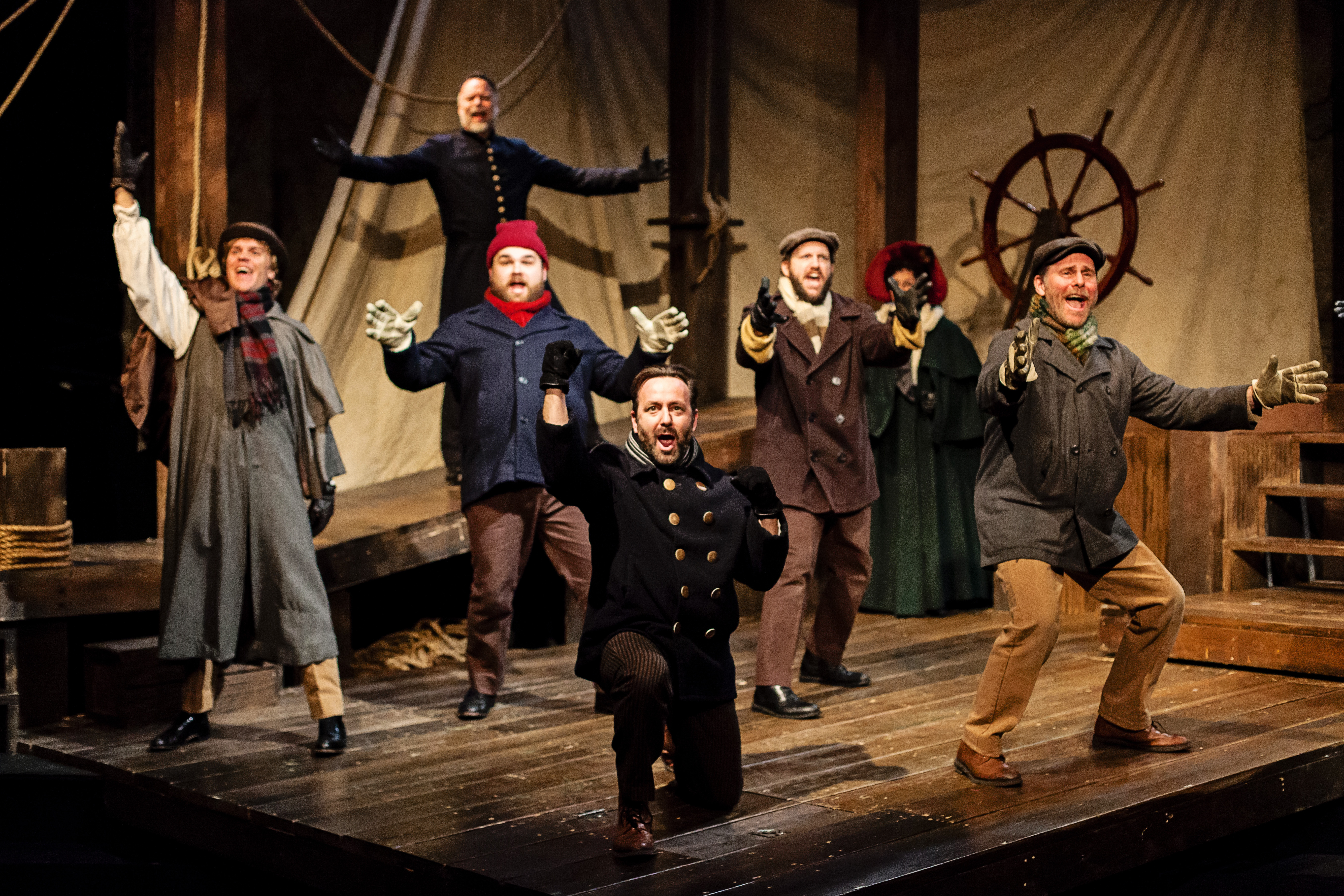 Captain Peter Stossel (Stef Tovar) has a good life and thriving business in Manistique, Michigan. He lives with his wife, Alma (Brianna Borger), his 9 year-old son Karl (Peyton Owen), and his father, Gustav (James Wilson Sherman). The Stossels honor a lovely German tradition at Christmas dinner when Alma passes a branch of fir to family and friends at the table, while singing a song called “The Blessings of the Branch.” At the end of each performance, the cast shares that touching tradition with the audience.