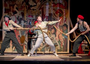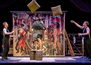 My favorite part was the “preamble” it was funny how the cast set up for the play and involved the audience to prepare them for what was to come. It cracked me up! I also especially loved the acrobatics! The comedy was very physical and so well done.