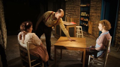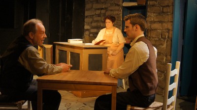 He is gone for some time and becomes very ill while in America, the locals have no idea if he is alive or dead as there has been no contact. When he does come back, without having taken the role, it matters not to him as he now feels differently about himself and in fact, respects himself for the first time in his life. But we, the audience ,now learn some truths about the events of the past and some of the townspeople as we watch the changed Billy emerge. I do not want to give away the ending of this heartwarming story, but we see the others in the town for who they really are and the love and the caring of the “aunts” that have raised Billy to adulthood. The other characters in this strong production are Mammy ( the hysterical Kathleen Ruhl- great comic timing) as Johnnypateenmike’s mother, Chuck Spencer as Doctor McSharry, Patrick C. Whalen as Bartley and Baize Buzan ( an incredible performance) as his sister Helen, the town bully.