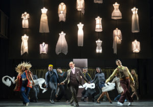 The ensemble gathered for this production is powerful and we learned tonight that during the run they have had numerous bouts of Covid causing many substitutions and as I always say the understudies and swings have become more valuable of late due to the pandemic. An interesting story in this “tryout” is that of a Chicago actor, Sawyer Smith. Sawyer has done numerous shows in the area and was cast as an ensemble member for this production. A few weeks ago, Covid hit and Sawyer had to stay out for the required days. Sawyer got well and as new shows go, there are changes almost daily for the cast to learn. Sawyer came back and ended up with a broken arm. Director Anna D. Shapiro ( of Steppenwolf fame) said Sawyer was not being replaced, but rather she redid costumes and blocking to accommodate the casted arm. When Elton John stopped by to view the show, seeing the cast, he autographed it, so Sawyer’s dream of going to Broadway never was in question thanks to the marvelous people involved with this production.